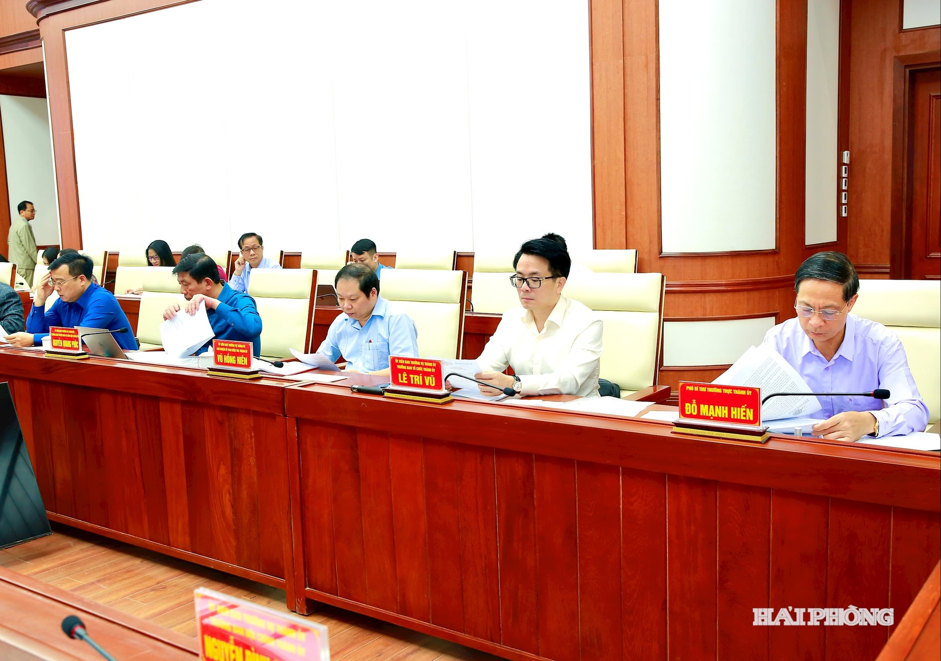 Hội nghị nghe và cho ý kiến về tiến độ xử lý các vụ án, vụ việc liên quan: Dự án Làng Biệt thự du lịch cao cấp Vạn Hương; Sở Tài nguyên và Môi trường chưa hoàn ứng 52 tỷ đồng tiền giải phóng mặt bằng; thu hồi tài sản trong vụ án Trần Quang Vũ; Dự án cây xanh Tam Bạc; vụ án vi phạm quy định về khai thác tài nguyên xảy ra tại Công ty Xi măng Phúc Sơn; vụ việc có dấu hiệu vi phạm trong quản lý tài chính, có nguy cơ thất thoát phần vốn góp của Nhà nước tại Công ty CP Cung ứng tàu biển Hải Phòng.